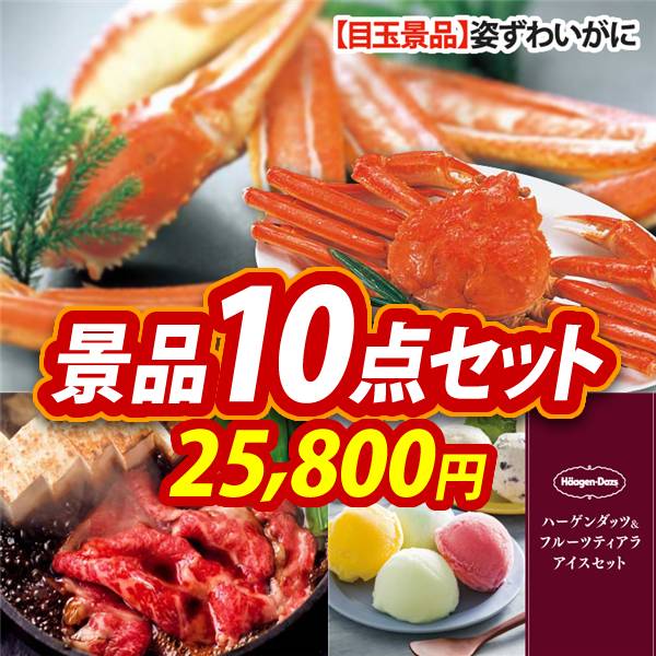 ゴルフ景品10点セット【姿ずわいがに、聘珍樓チャーシュー麺 他】送料無料!特大パネル・目録・特典付き!