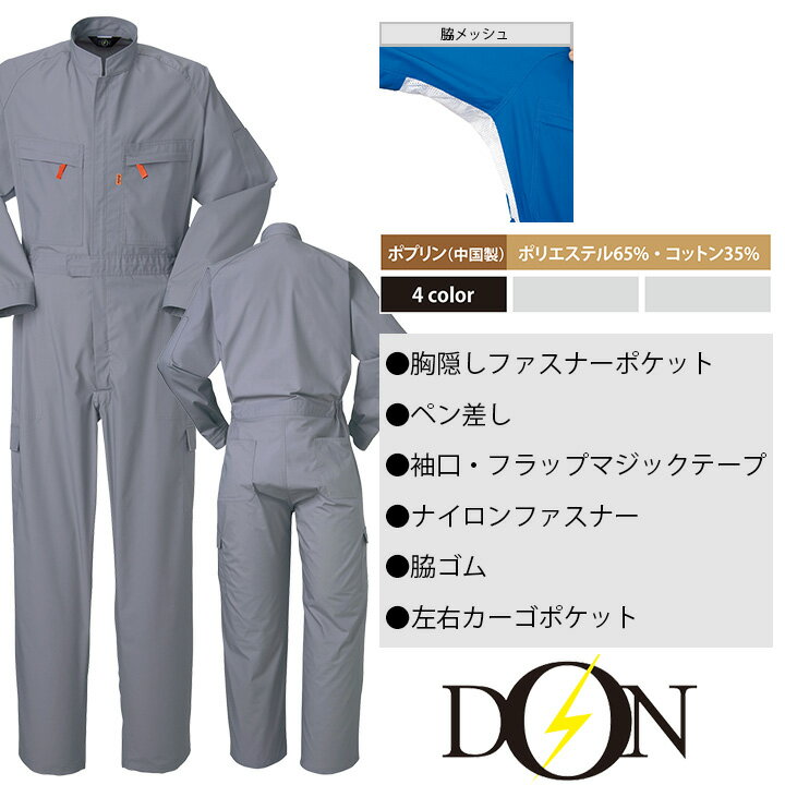 つなぎ 作業着 ヤマタカ DON 615 メンズ レディース 長袖 脇メッシュ 帯電防止 ツナギ 男女兼用 チーム イベント用 作業服 オールシーズン【社名刺繍無料】