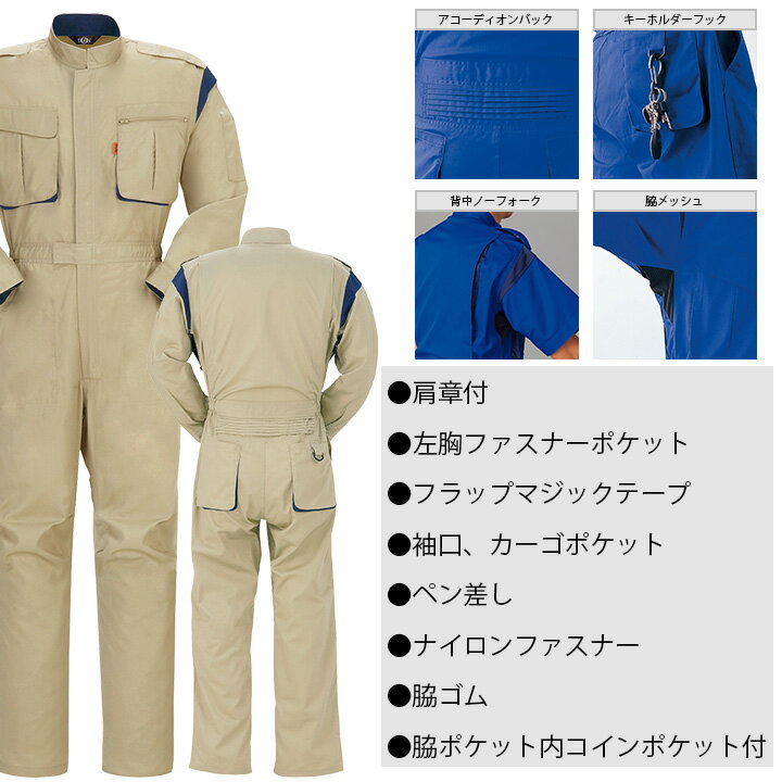■ヤマタカ DON 春夏 長袖つなぎ服 9990 ■素材 ツイル(中国製)、ポリエステル65%、コットン35% ■仕様 背中ノーフォーク アコーディオンバック 膝ダーツ 脇メッシュ キーフォルダーフック付き 肩章付き 左胸ファスナーポケット フラップ・袖口マジックテープ ペン差し ナイロンファスナー 脇ゴム 脇ポケット内コインポケット付き モニター環境により画像の色と現物の色が多少違って見えます。