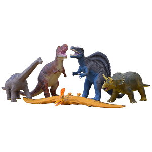 恐竜の代表ともいえるティラノサウルス、トリケラトプス、スピノサウルス、ブラキオサウルス、プテラノドンの5種類がセットになっています。